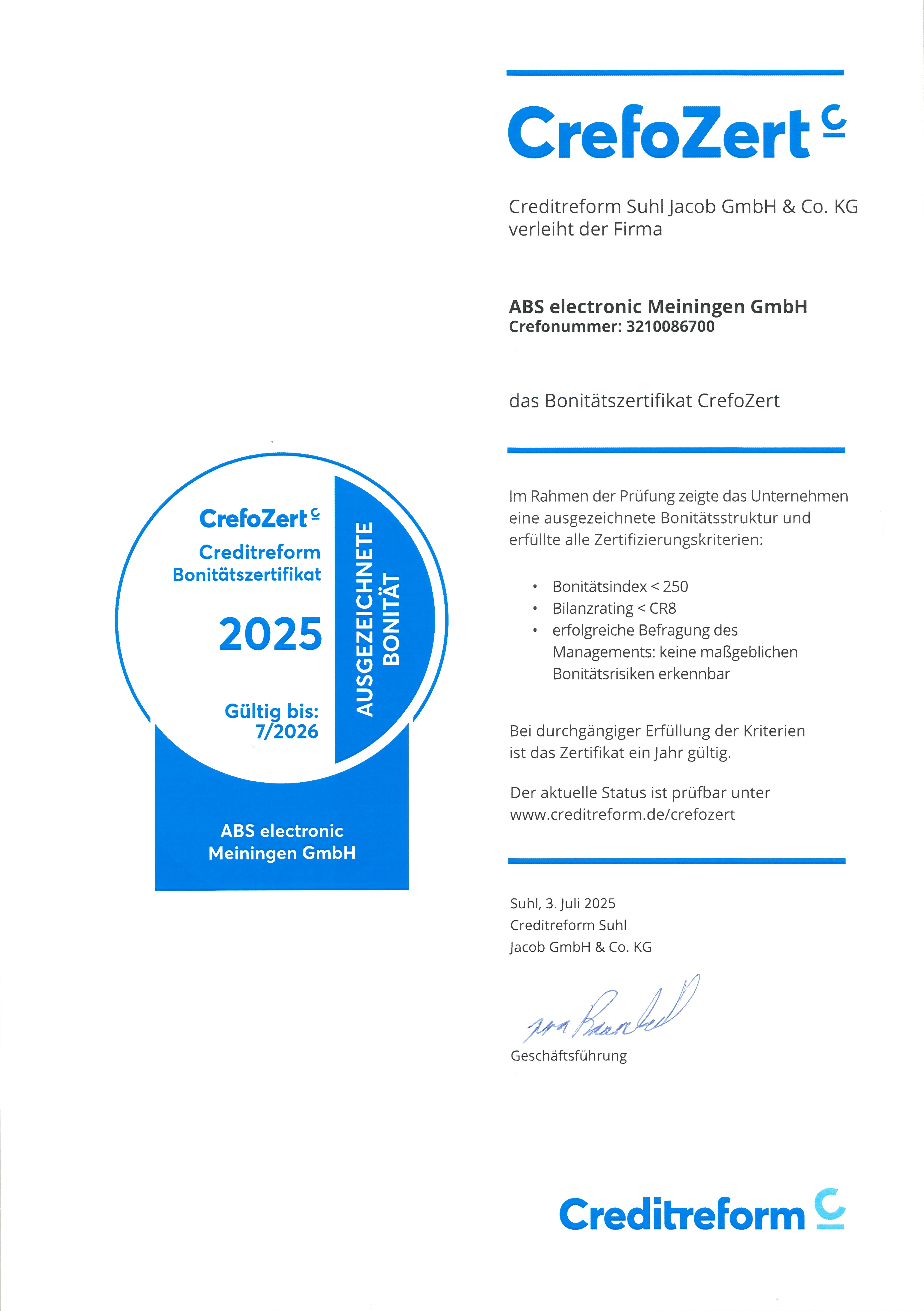 Bonitätszertifikat Creditreform