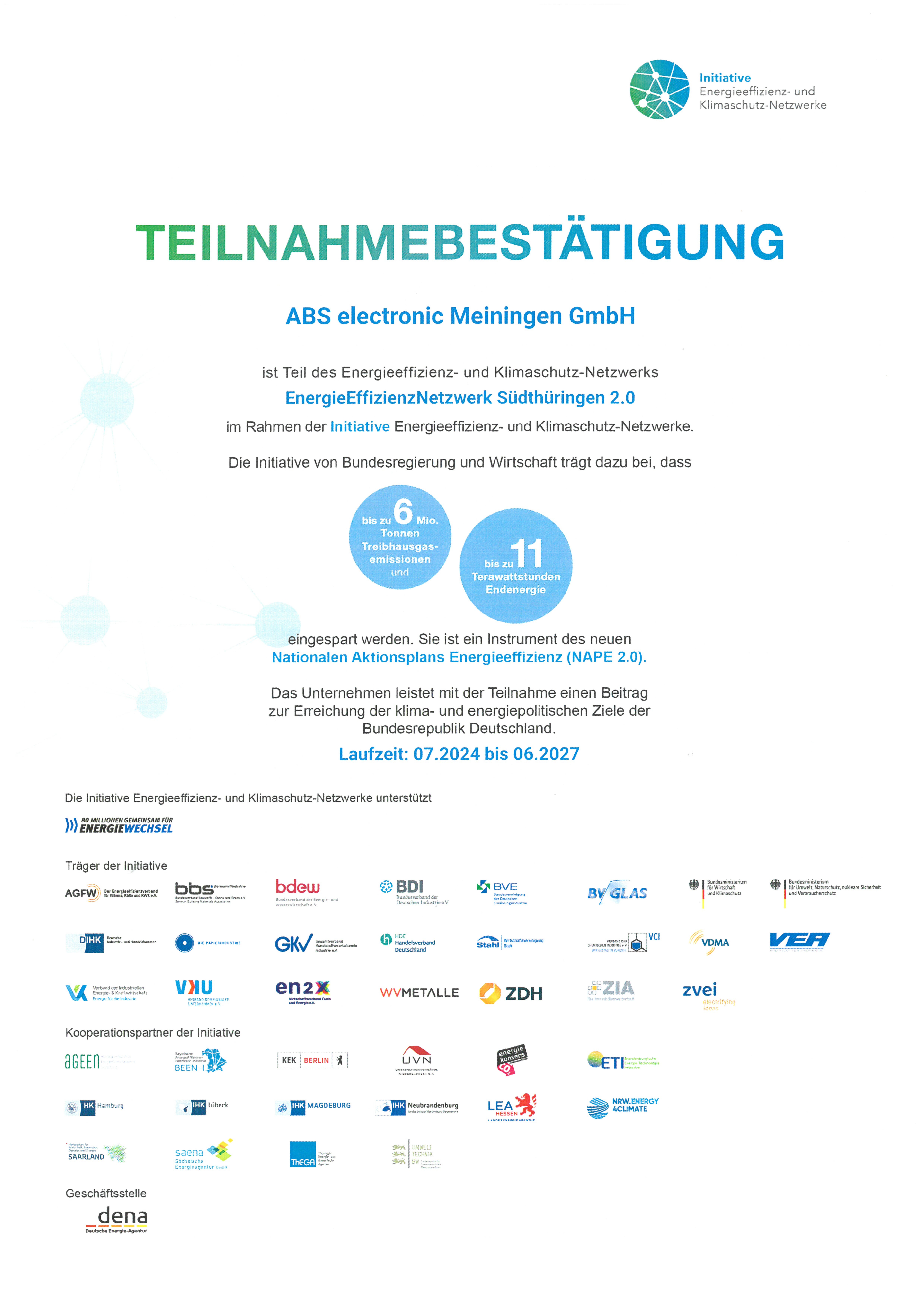 Die ABS electronic Meiningen GmbH verlängert Ihre Teilnahme am Netzwerk für nachhaltiges Wirtschaften bis 2025.